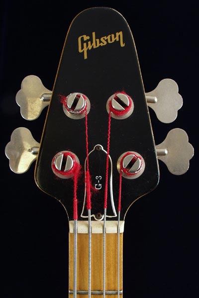 The Grabber and G3 had rather different construction to other Gibson basses. As well as the neck being bolt-on, it is joined to the headstock by a scarf joint, rather than timbers running the entire length of neck and headstock. The Schaller BM tuning keys are typical for this time period.