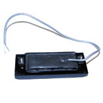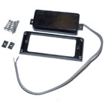 The newly designed SB range of 1972 did away with the 1971 version's single-coil pickups, in favour of black plastic humbuckers. Each pickup is spring-mounted to a black plastic surround, so height adjustable. The SB humbuckers are potted (filled with resin), preventing examination of the windings. The images below show the pickup mounted in an SB bass, the pickup underside, and the components that complete the pickup assembly. Typical D.C. resistance for this pickup is around 6.2kΩ, front or back.